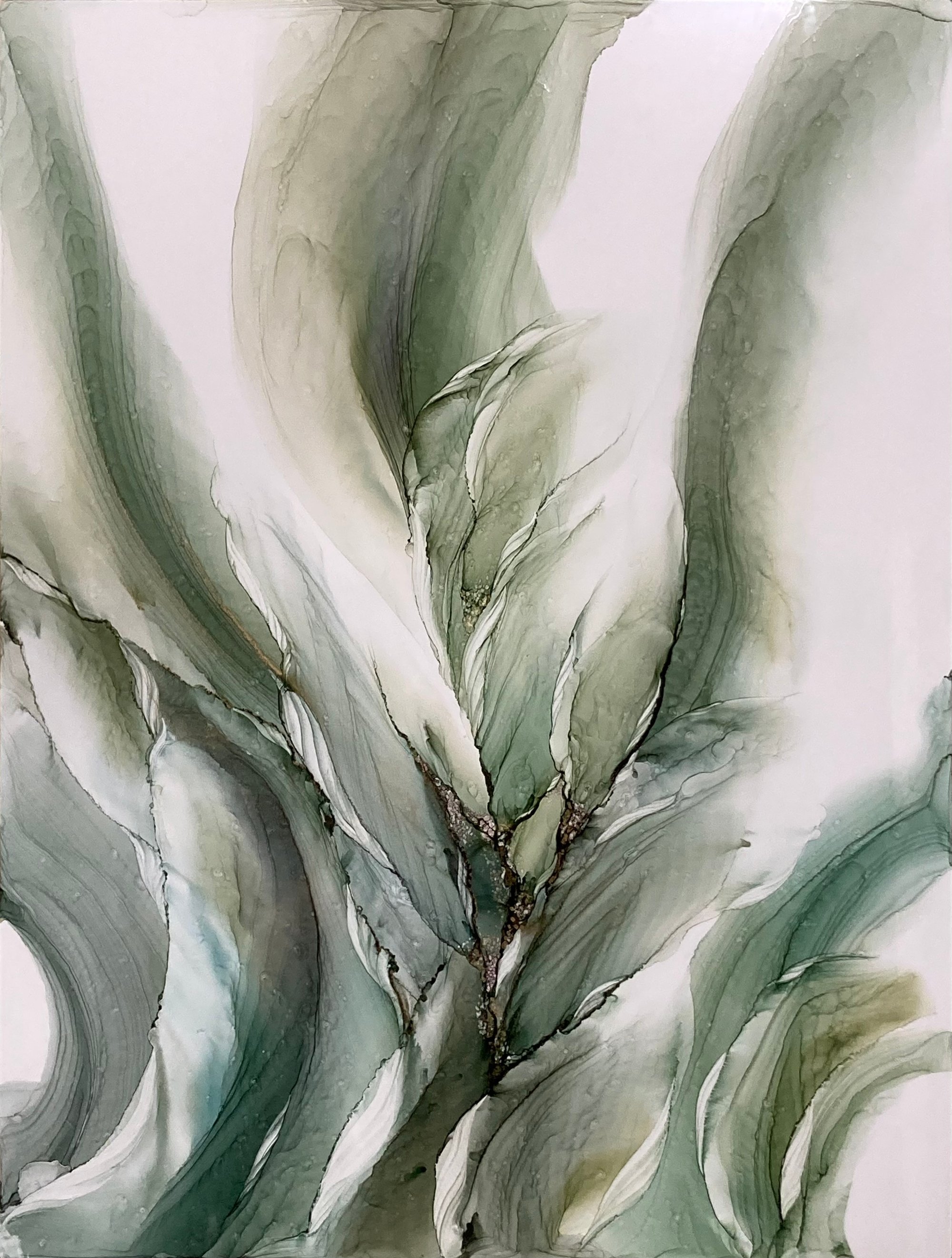 Original abstract alcohol ink painting on 18 x 24” aluminum composite panel mounted to a gallery wood panel. Finished with varnish and UV protectant.