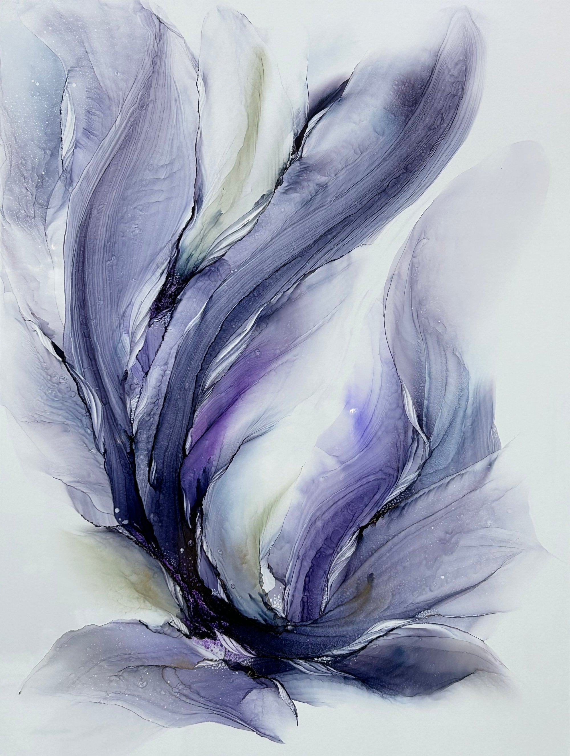 Original abstract alcohol ink painting on 18 x 24” aluminum composite panel mounted to a gallery wood panel. Finished with varnish and UV protectant.
